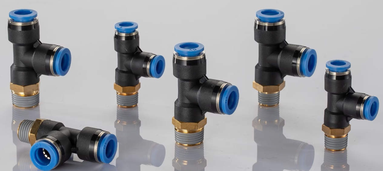 Pneumatiska instickskopplingar är anslutningskomponenter som ofta används i pneumatiska system, vanligtvis för att snabbt och bekvämt ansluta luftledningar till pneumatisk utrustning. Dessa beslag har en enkel design, är lätta att installera, erbjuder stark tätning och möjliggör snabb in- och urkoppling utan behov av specialverktyg. Därför används de i stor utsträckning inom olika industrier, inklusive automation, maskintillverkning, fordonsindustri, livsmedelsbearbetning och förpackning. Oavsett om det gäller montering, underhåll eller utrustningsuppgraderingar, förbättrar pneumatiska push-in-kopplingar avsevärt arbetseffektiviteten, minskar stilleståndstiden och säkerställer en stabil drift av pneumatiska system.